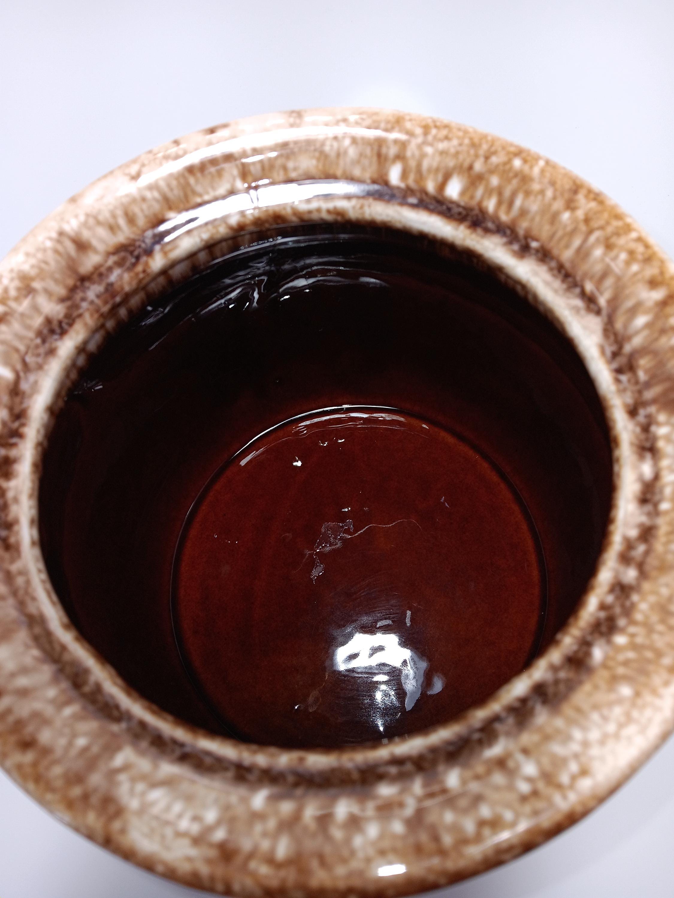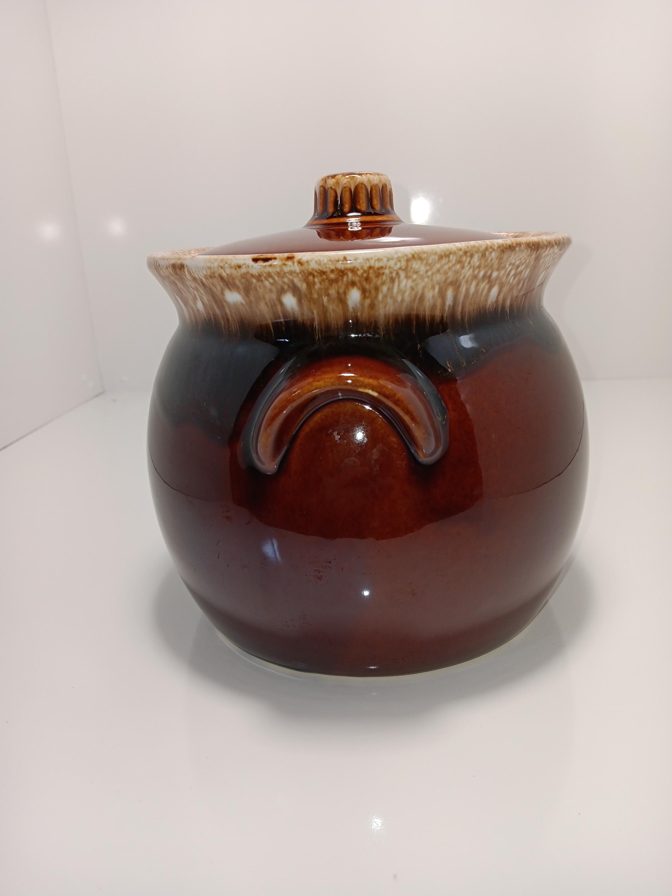 Vintage 70's Hull Pottery serve wear is beautifully done in classic drip glaze . Rich brown color accented by tones of cream and beige. All marked and oven proof. Excellent condition. No chips or cracks. 2 piece set. Bean pot is 6" tall and 6" in diameter. 2 quart size. Divided vegetable bowl is 11" long and 7 3/8 " wide. Classic Hull is great for any decor.