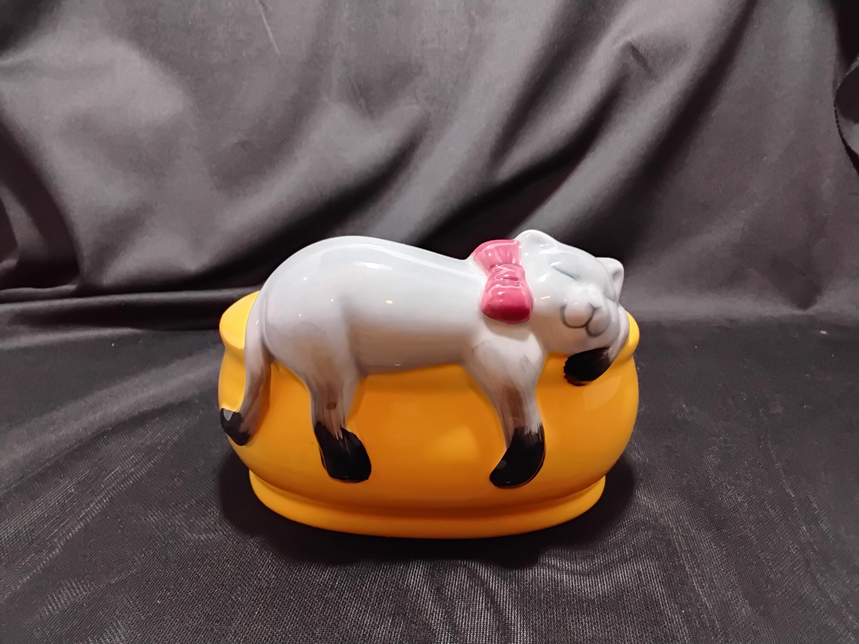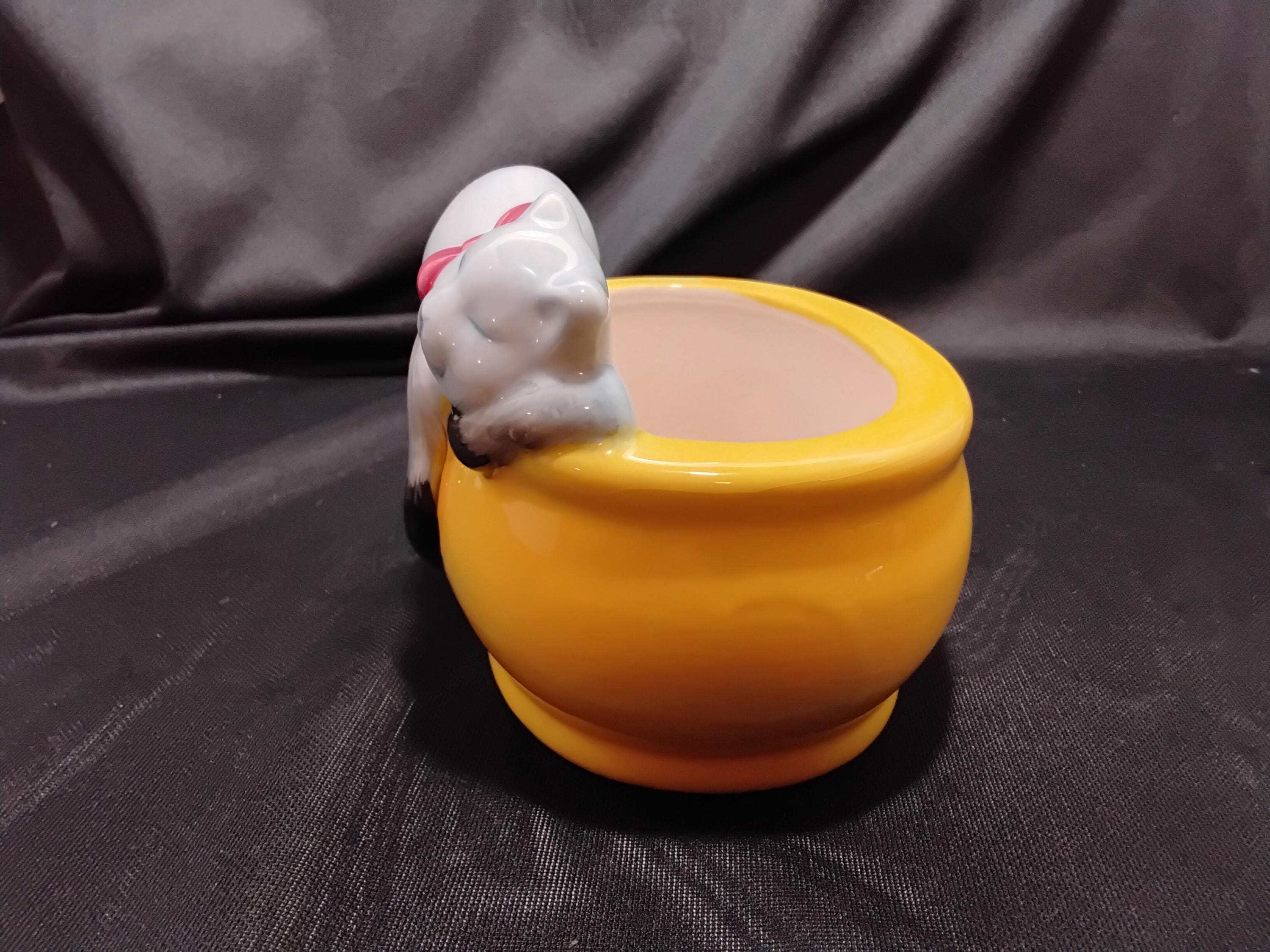 Sleeping cat planter is adorable. Vintage circa 2000, made in China. Indoor use only.great for small plants and succulents,can also be used for pens, nic nax etc. Collectors of cats or just cat lovers will enjoy this beautiful piece. Any decorcore, cottagecore, even childrens rooms. Very sweet gift as well. excellent condition, no chips or cracks.
