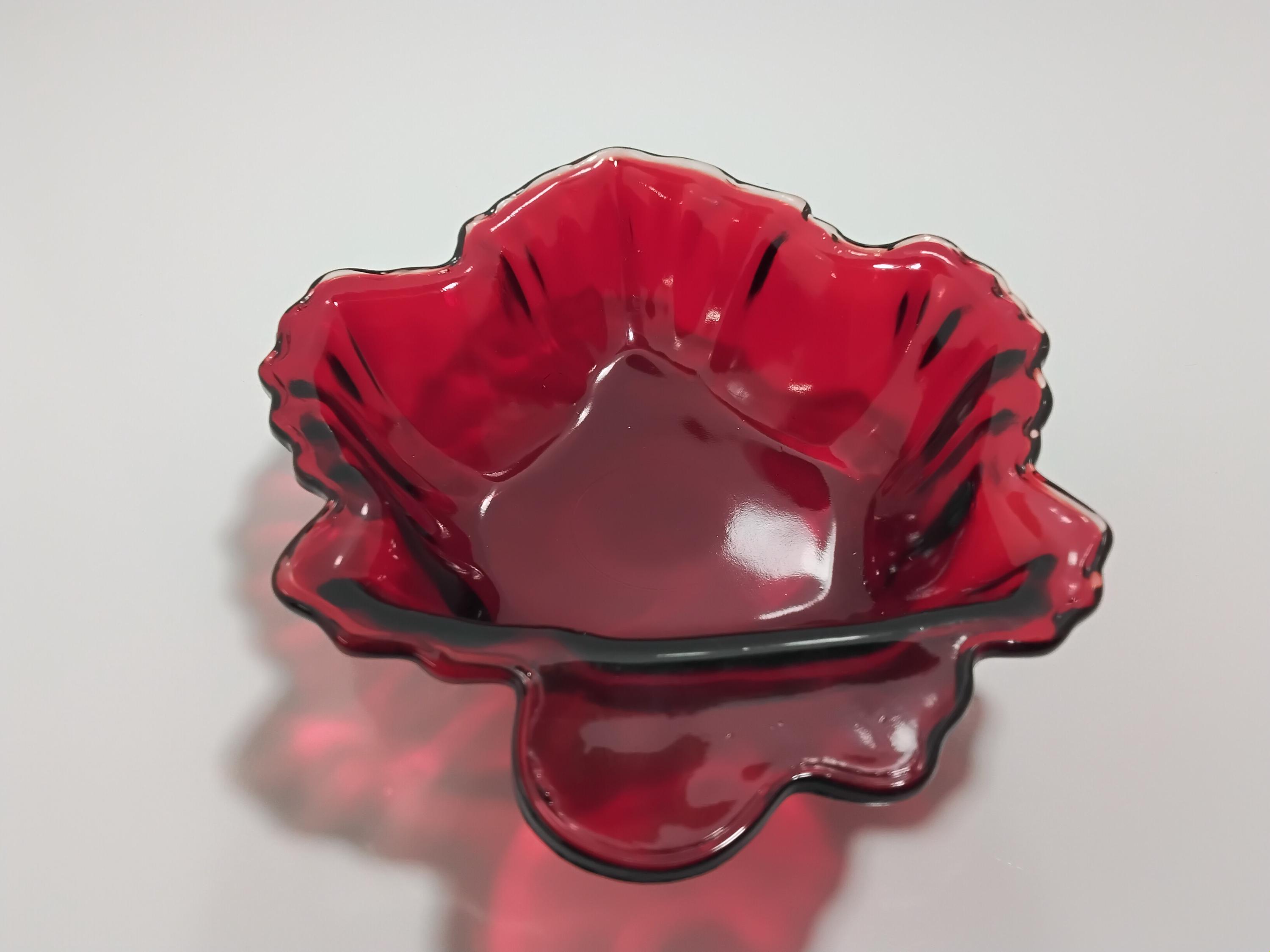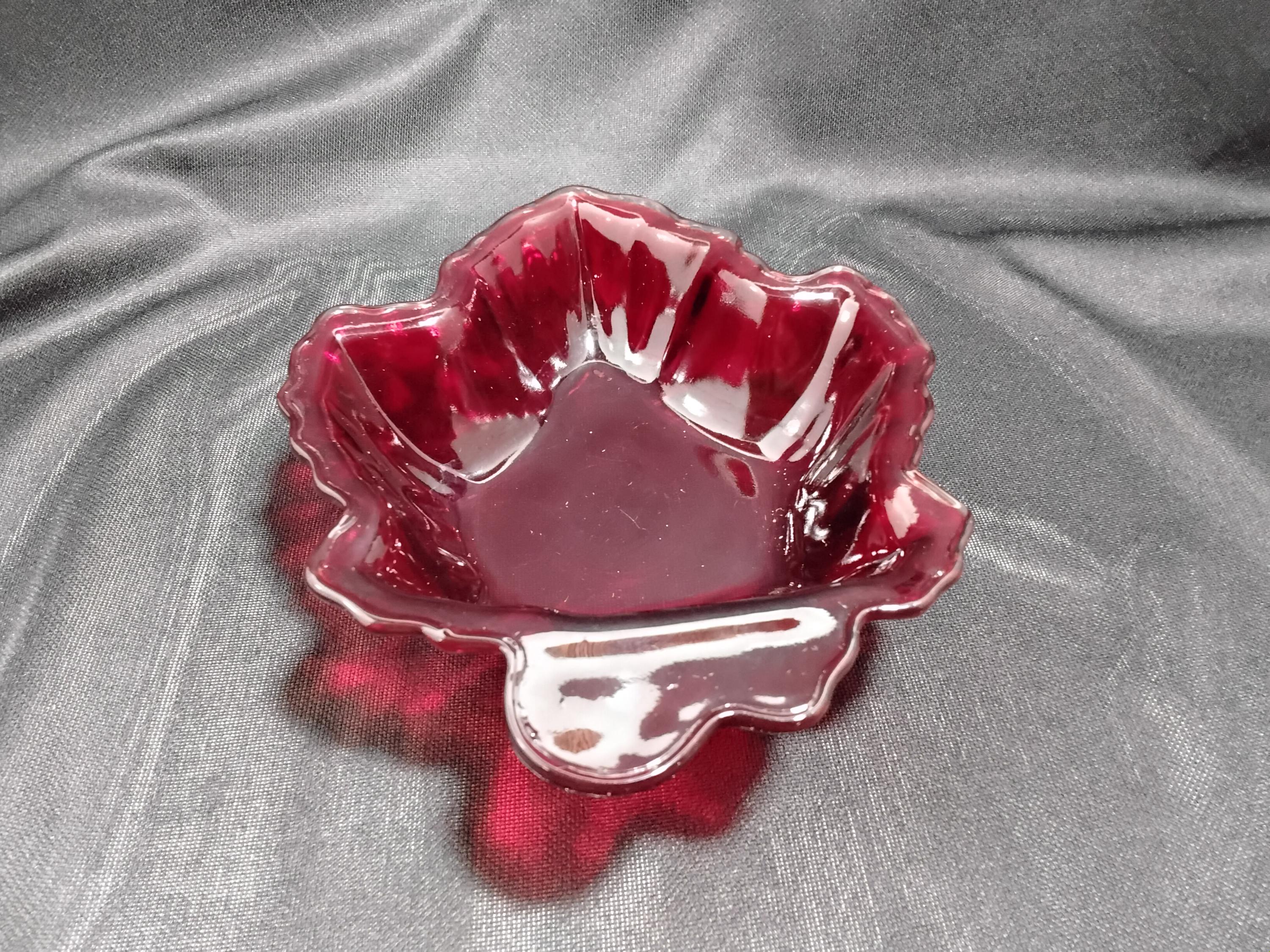 Beautiful Anchor Hocking Vintage Royal Ruby Red Glass Maple Leaf dish is a great piece for collectors of vintage dining wear and depression glass. Manufactered in 1938 as part of thier Royal Ruby Red line, the maple leaf dish is a rare find and highly collectable. Use for candy, nuts, or small items. It is in excellent condition, no chips or cracks. Size is 7x5. Weight is 8oz. Unmarked. Great to display or use around fall, winter, and, of course, Valentines Day.!