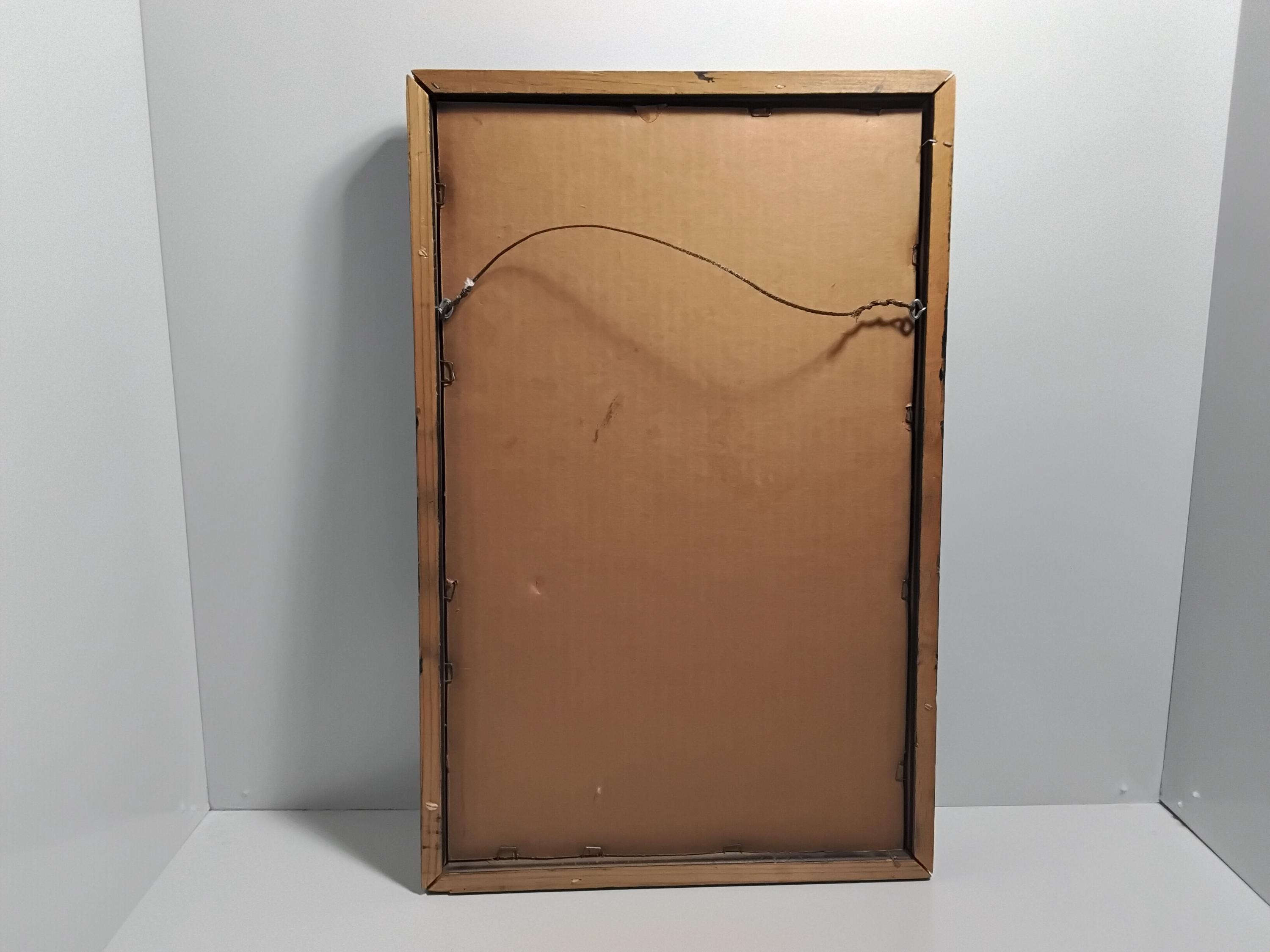 A Girl With A Watering Can was originally painted in 1876 by Pierre-Auguste Renior. This poster represents an exhibit of the old masters of art where they featured Renoirs most famous work. A rare find indeed. The poster is framed most suitable to the actual size of the poster itself. Framed under painted glass and has never been removed. The pretty girl is in her garden ready to water the beautiful plants around her. Its a stunning impressionistic painting imposed onto quality poster board. A collectors item indeed. Frame shows slight signs of wear, however, it is in very good condition for its age. Measures 17" long, 11" wide, 1.5" deep.