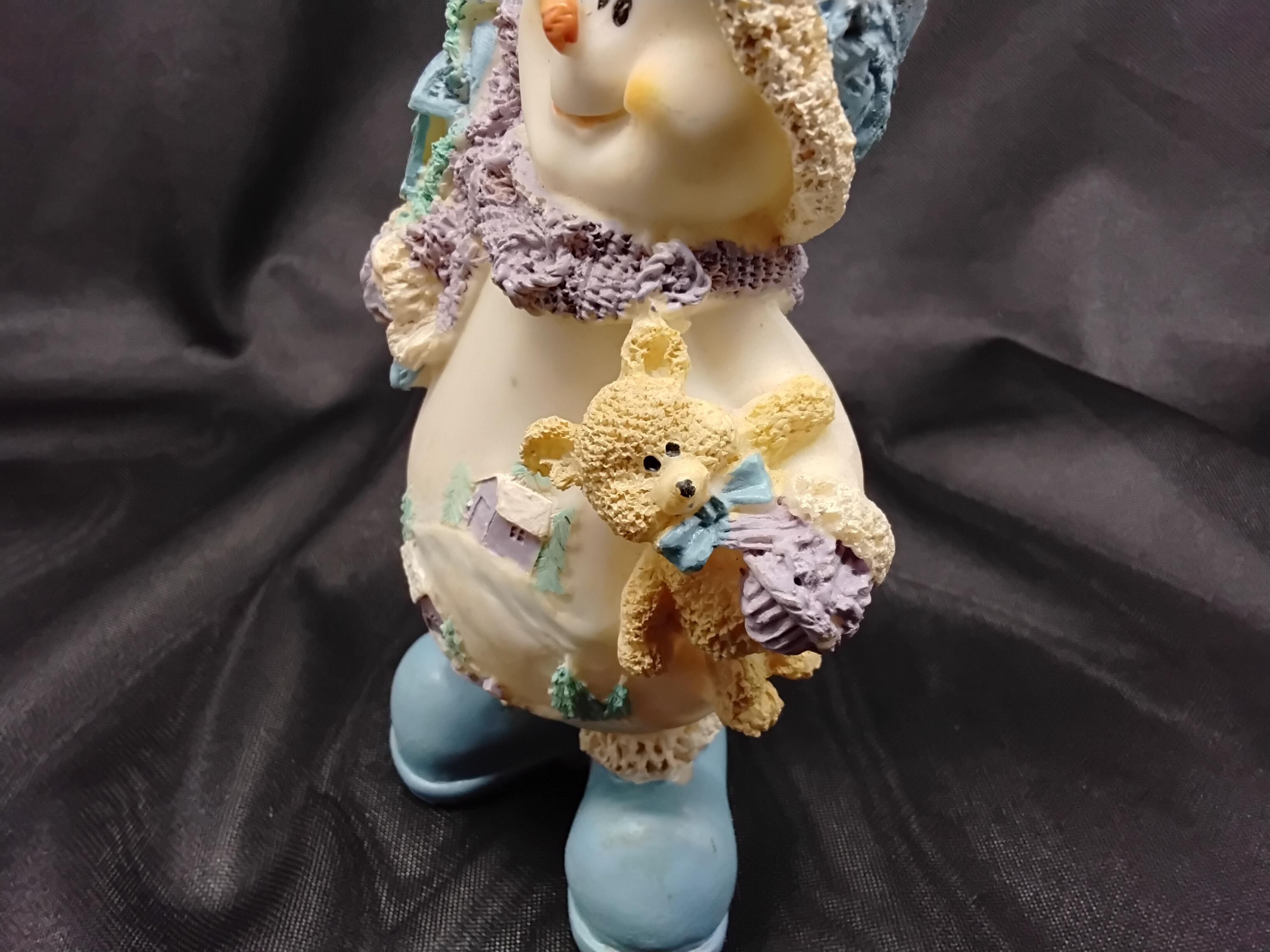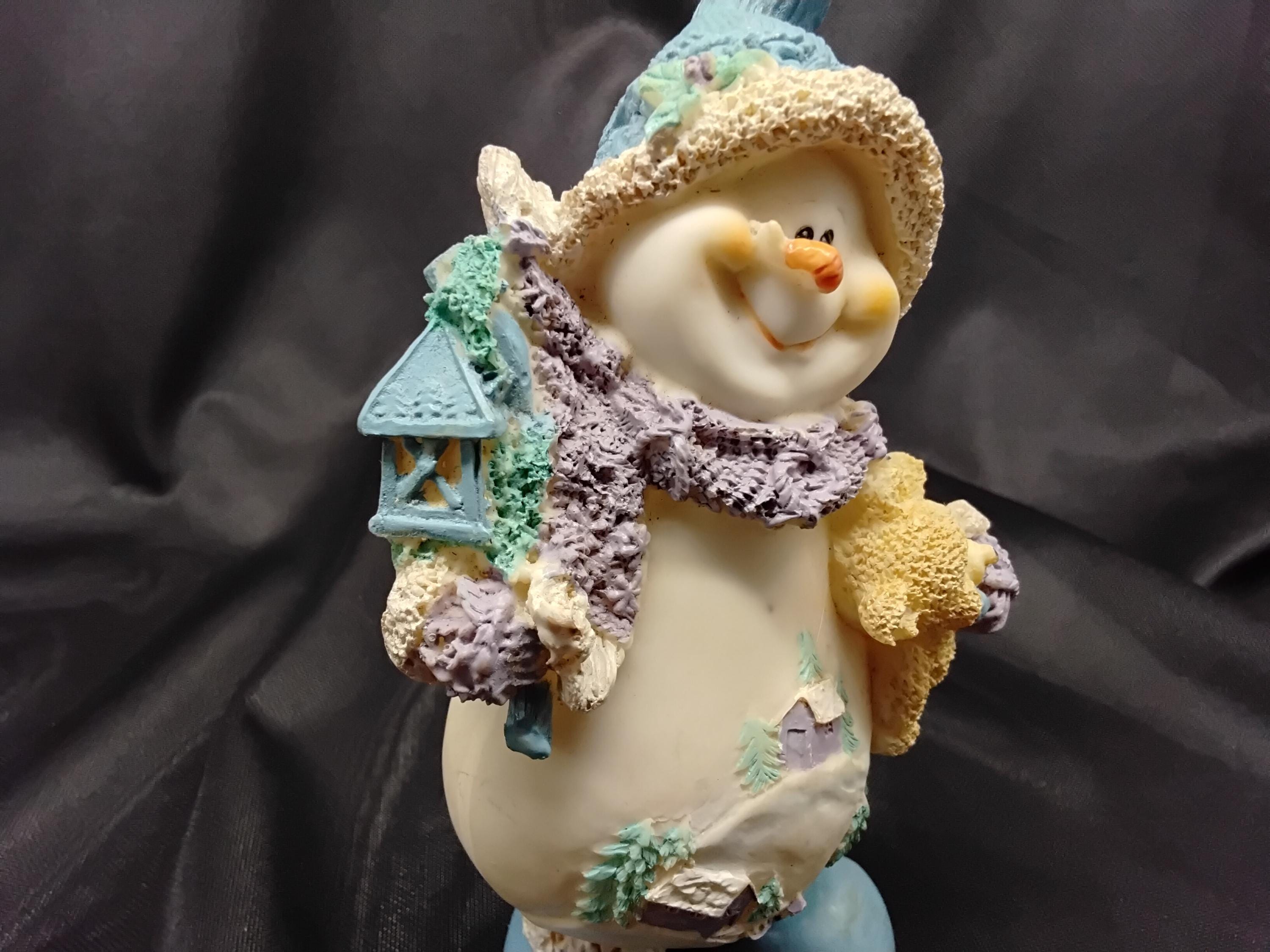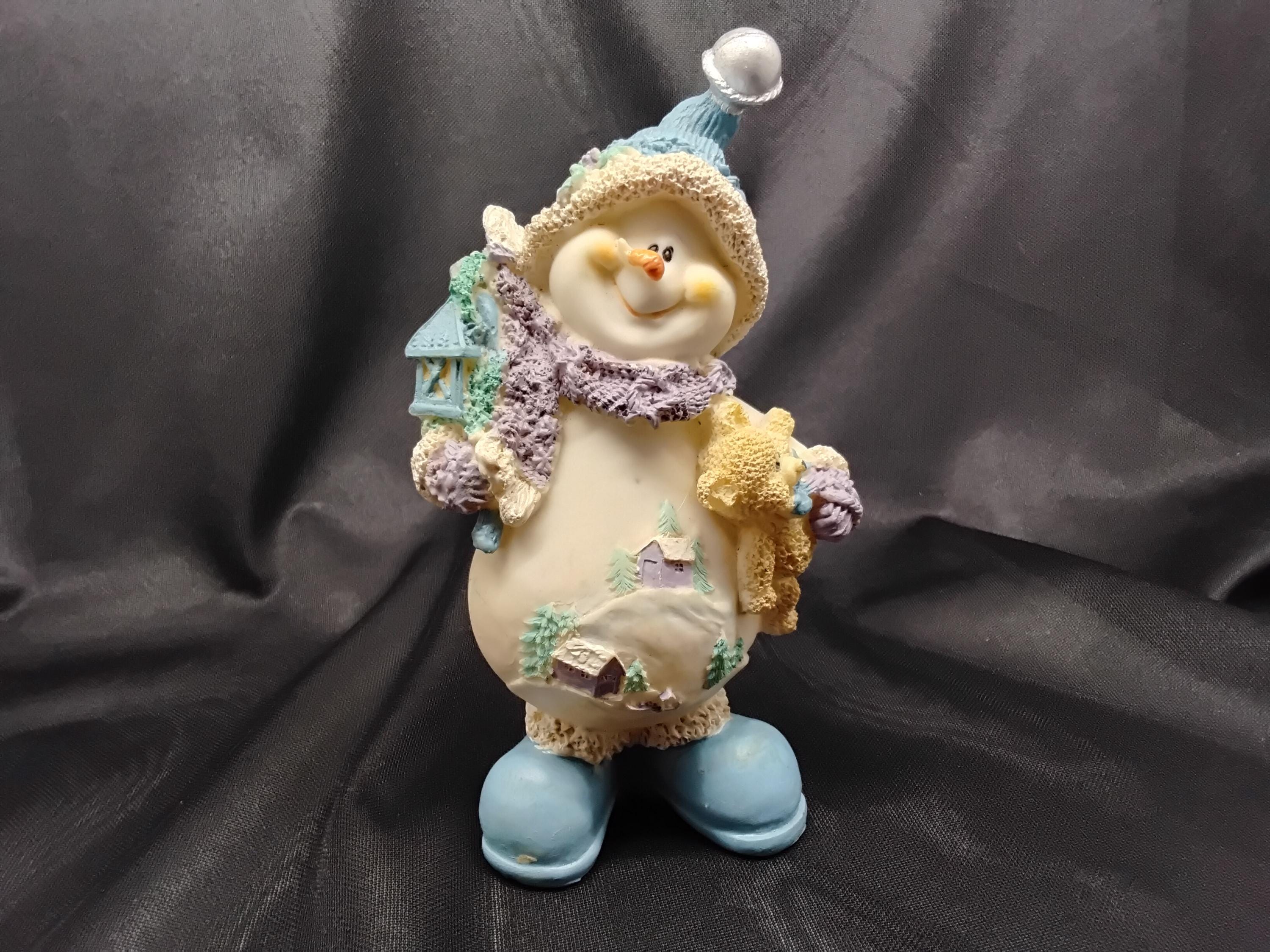 Adorable Snow Buddy made by Snowville Village aka: Encore is vintage from 1990's to 2006. The line is discontinued making it a rare find. Hand painted and made from resin this snowman holds a birdhouse and a teddy bear. A happy little guy! Great for children, the young at heart, and collectors alike. Measures 7" tall, 5" wide. CHRISTMAS ADORABLE DECOR! in excellent condition.