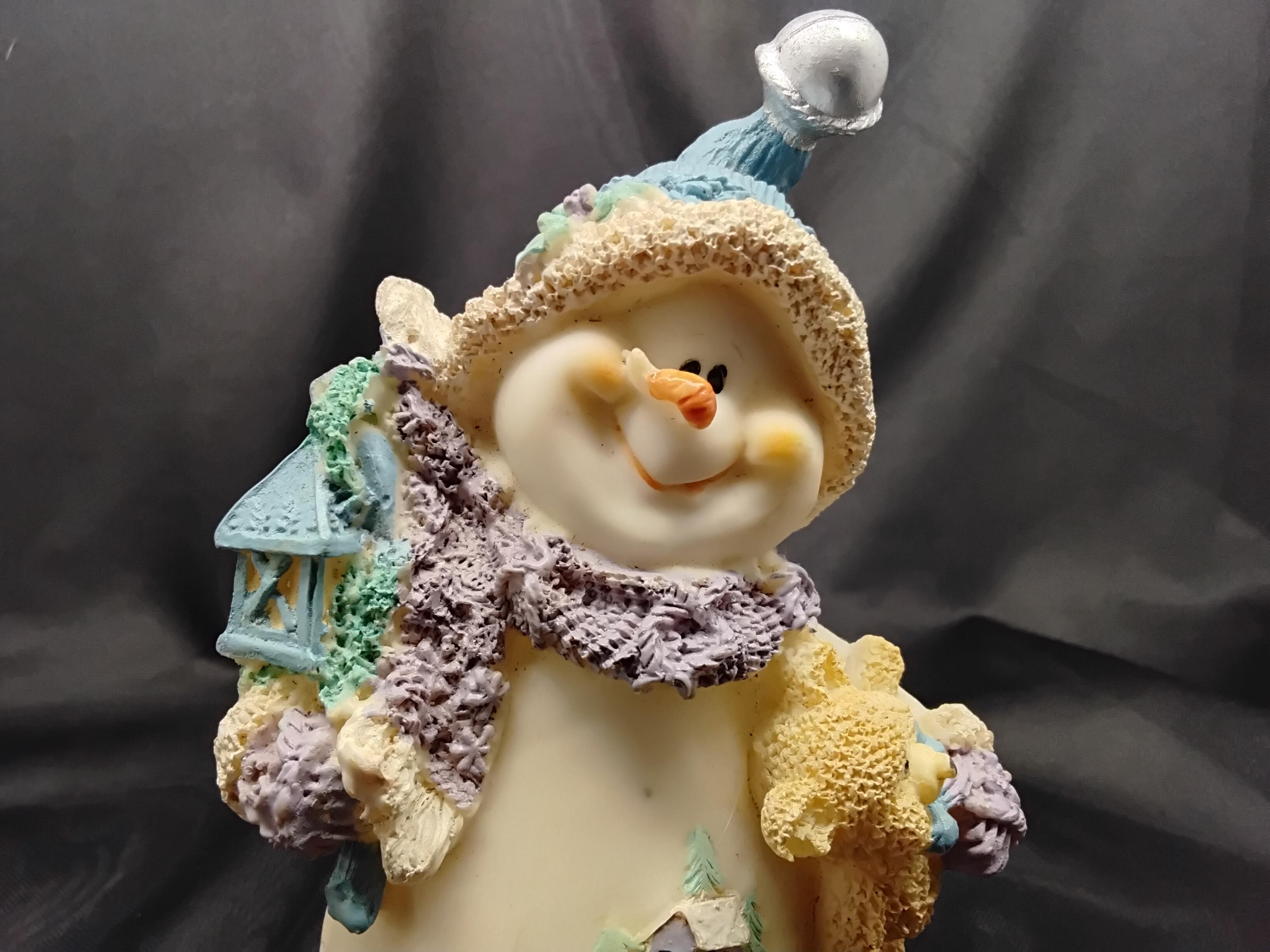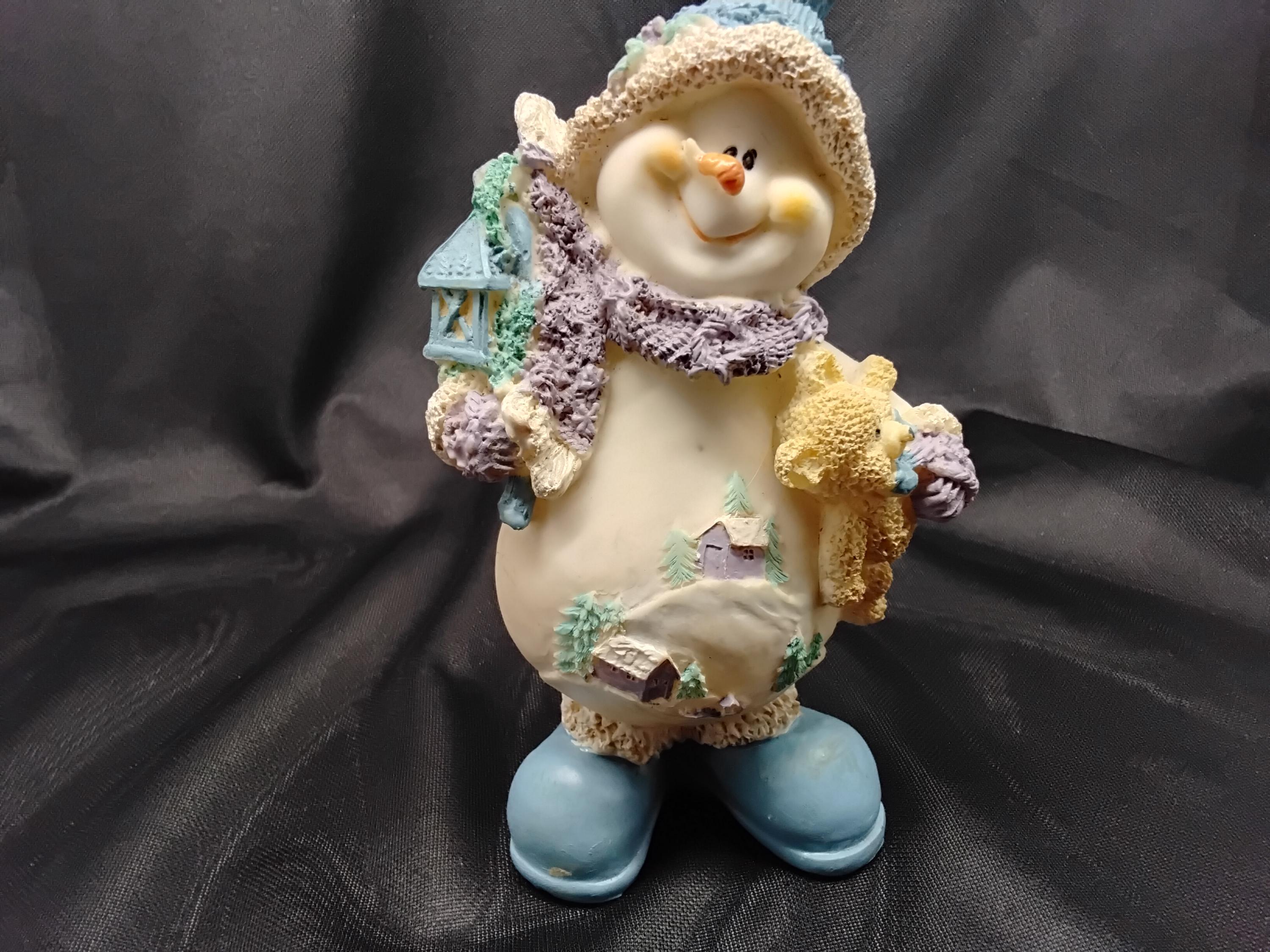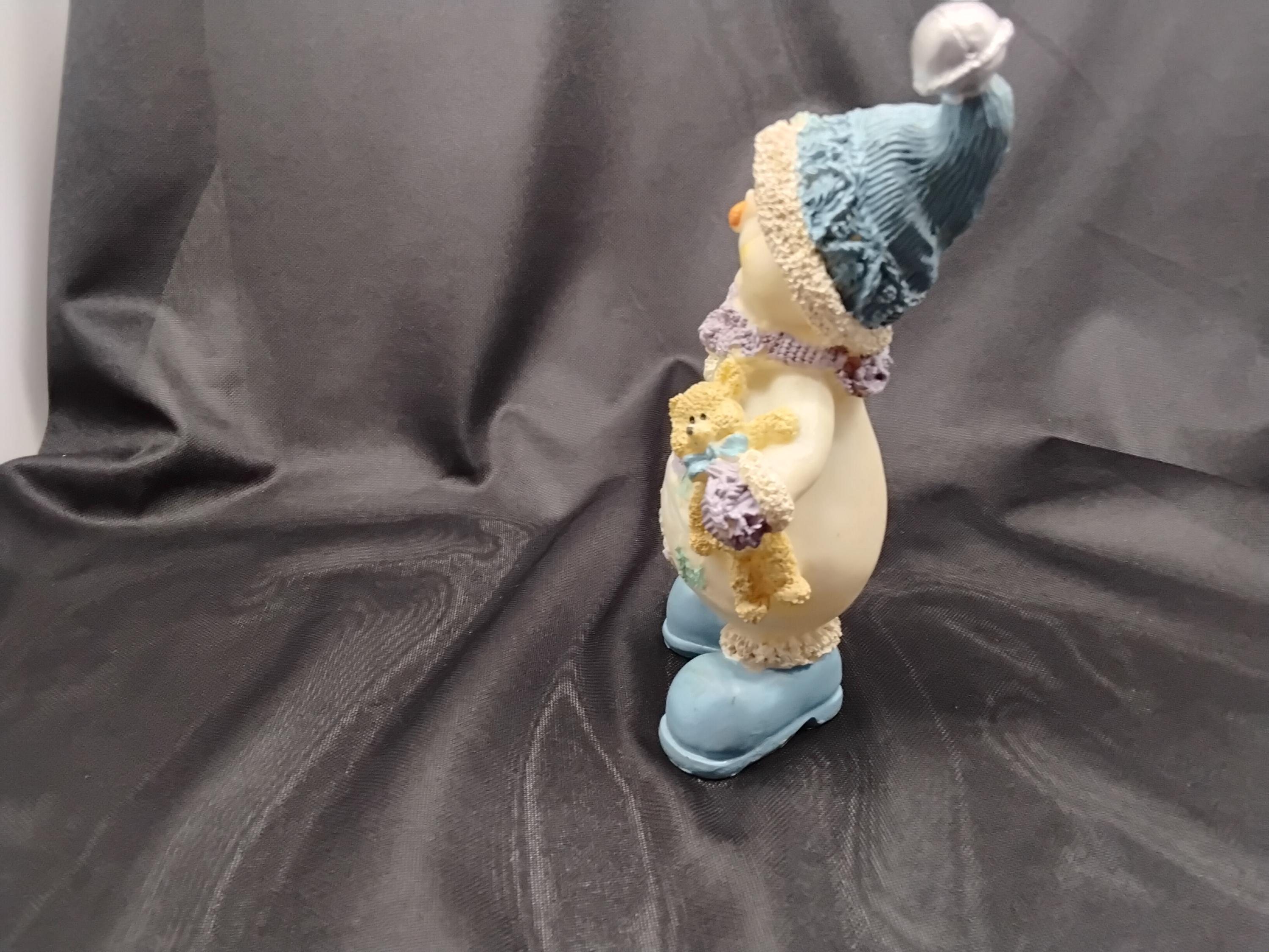 Adorable Snow Buddy made by Snowville Village aka: Encore is vintage from 1990's to 2006. The line is discontinued making it a rare find. Hand painted and made from resin this snowman holds a birdhouse and a teddy bear. A happy little guy! Great for children, the young at heart, and collectors alike. Measures 7" tall, 5" wide. CHRISTMAS ADORABLE DECOR! in excellent condition.