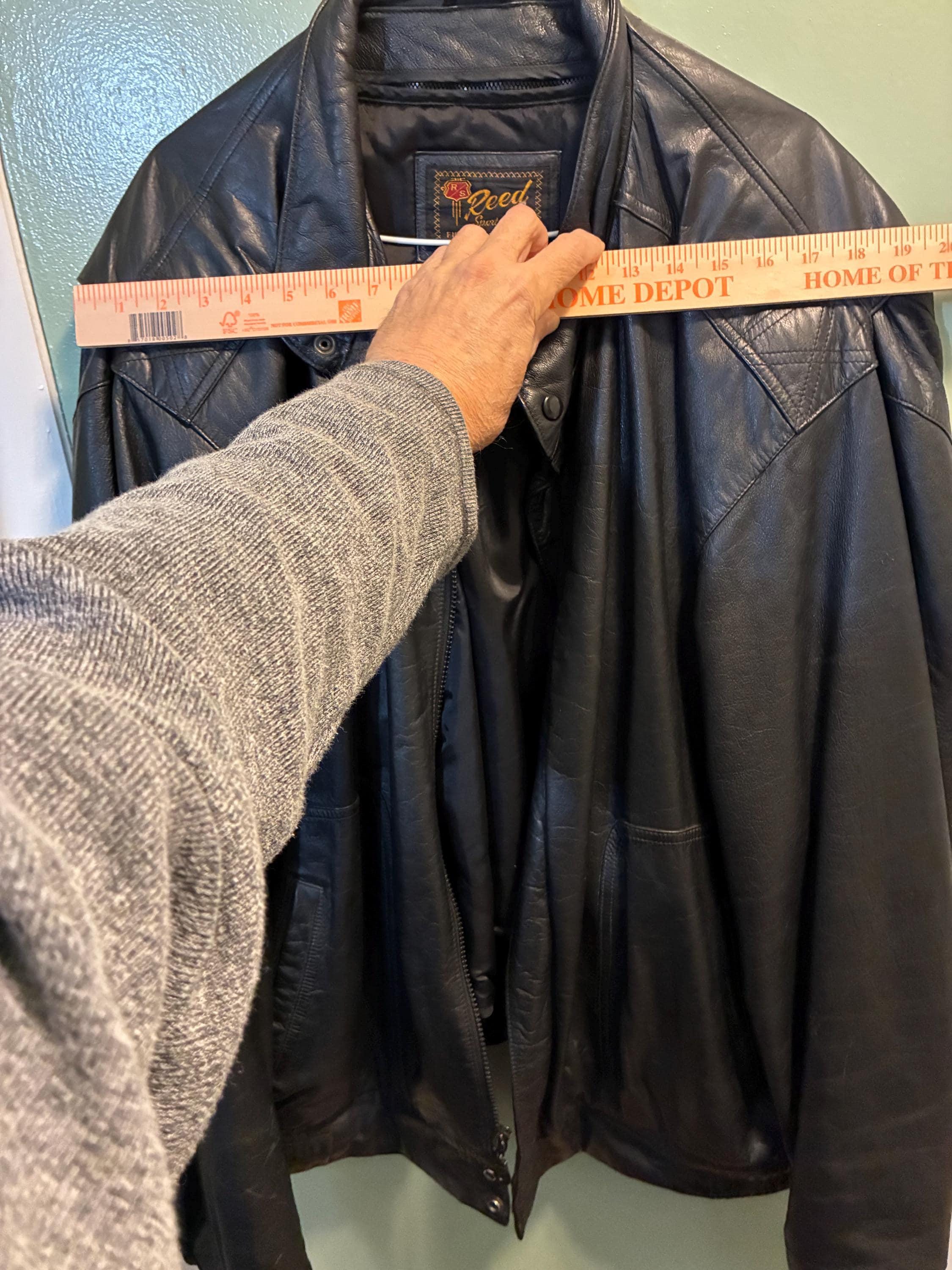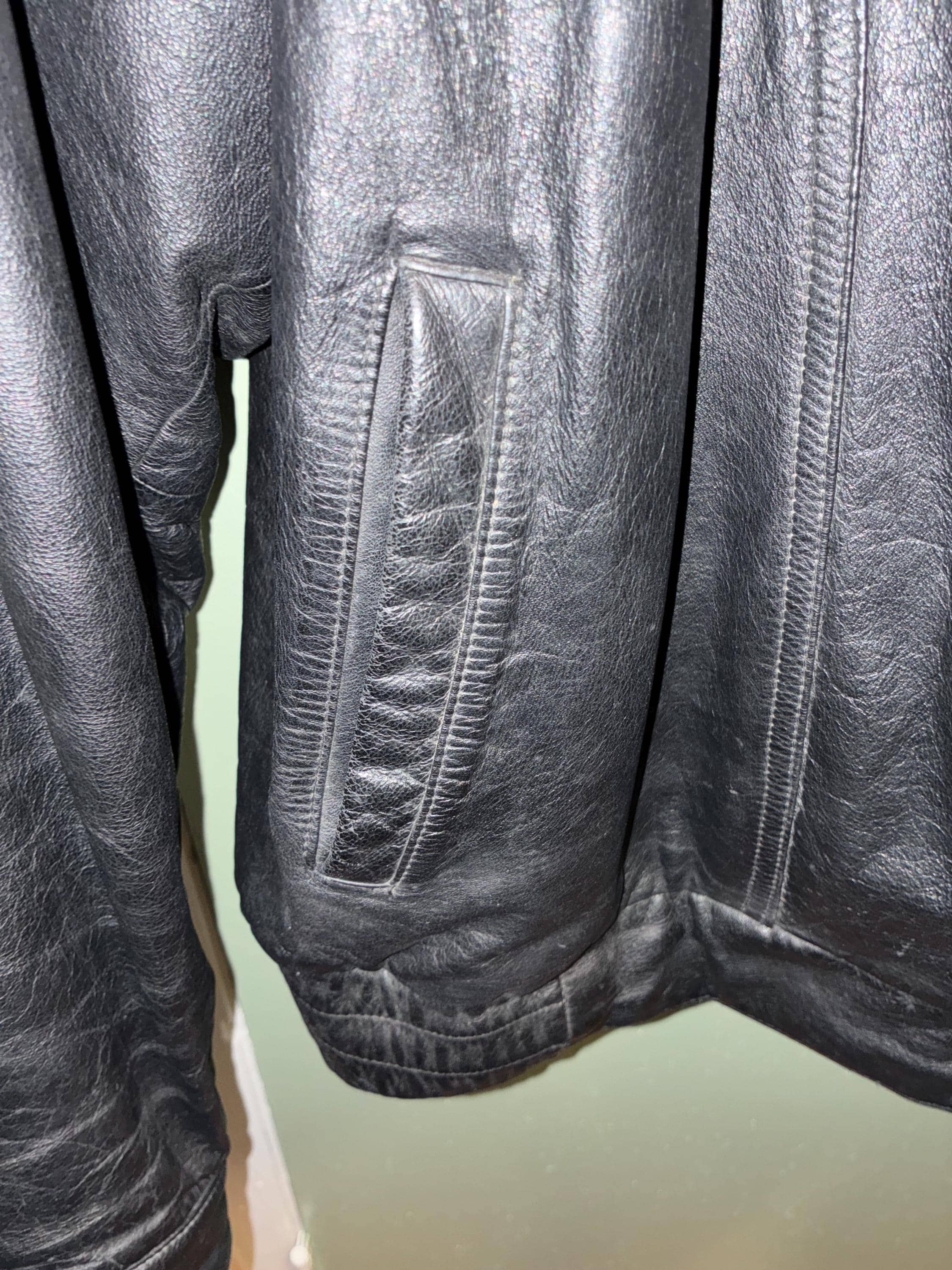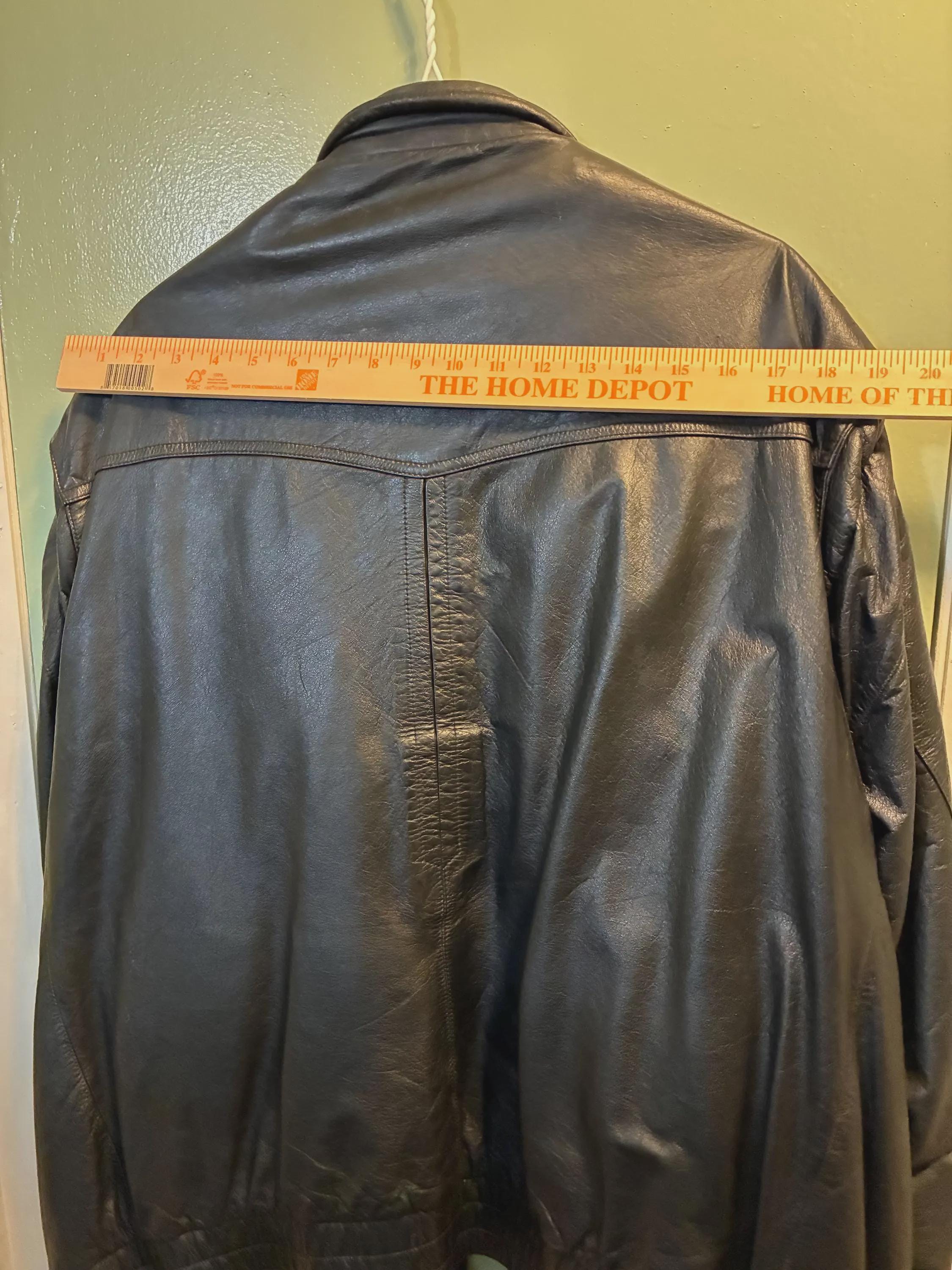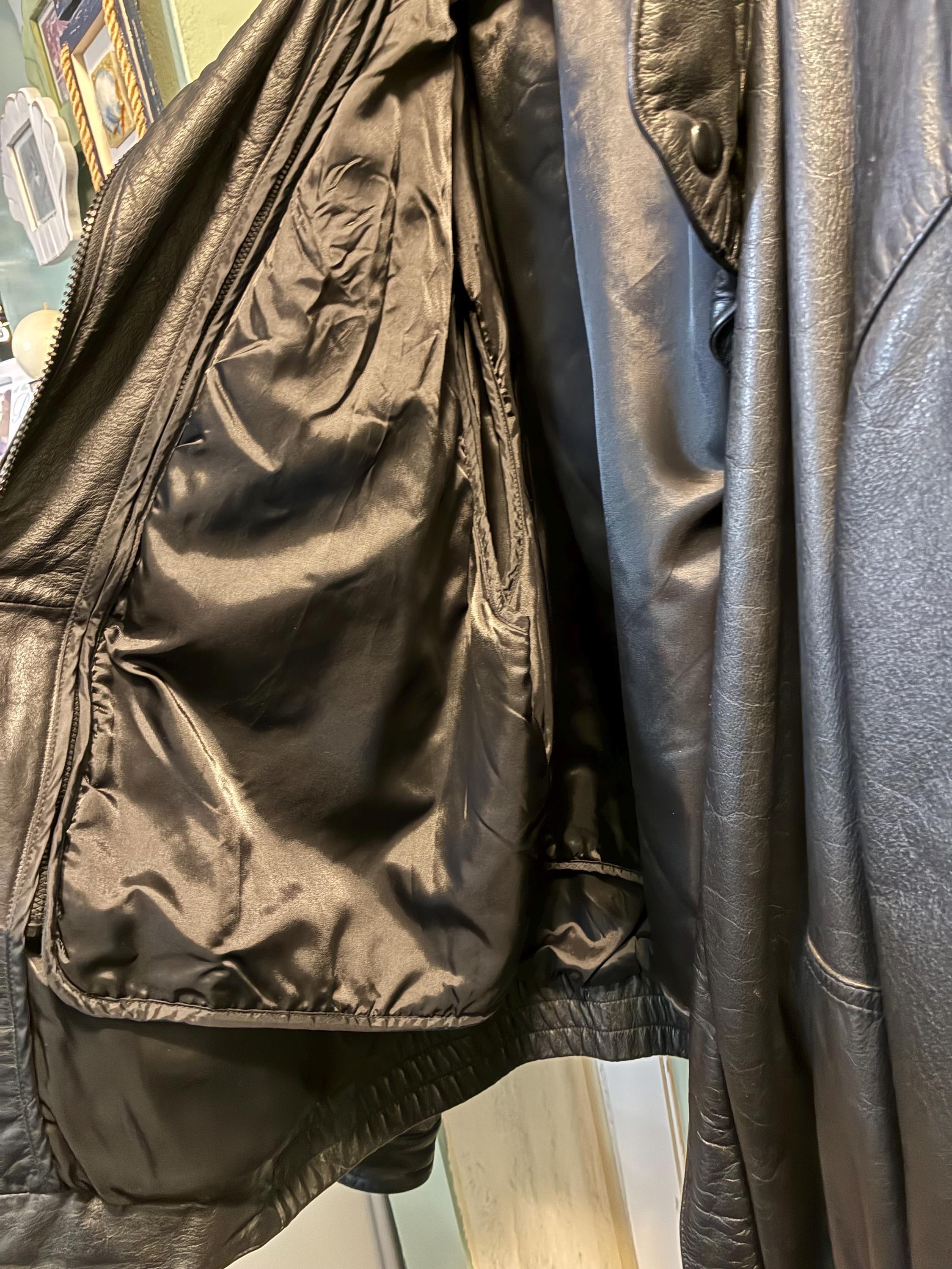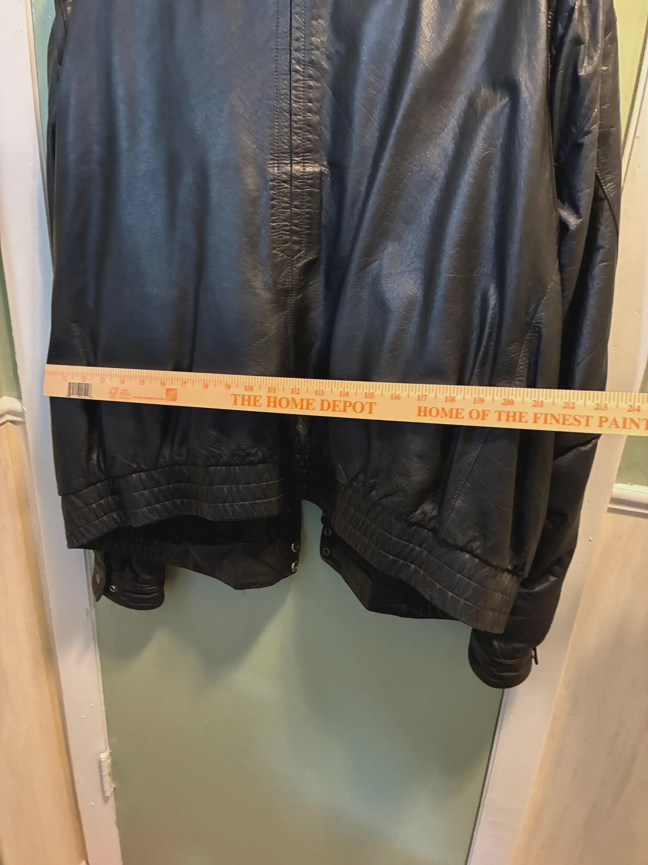 Vintage bomber jacket style sportswear, black leather jacket, 52 long by Reed first in quality with a 3M Thinsulate Thermal insulation liner like new 1970s to 1980s era zippers are in excellent condition and the whole jacket is in excellent condition. Very warm wind and rain resistant liner feels silky. measurements are approximately 19 inches shoulder to shoulder front and back 28 inches from collar down to bottom of the back 20 to 22 inches across the back lower waist area 33 inches from collar to the bottom of the front snap Buttons. please see photos.